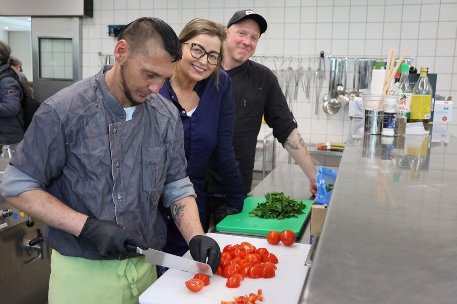 Die Übernahme der Kantine im MAGS ist nun eine weitere tolle Möglichkeit zu zeigen, dass das Projekt erfolgreich sein kann. Ein wichtiger Faktor dabei ist die Unterstützung von Agata Reul. Die Sterneköchin hat ein eigenes Restaurant auf der Kirchfeldstraße und kümmert sich um das Team, dass die Kantine an derzeit zwei Tagen in der Woche betreibt. Die ehemals obdachlosen Menschen werden im Rahmen eines Praktikums an Abläufe und Arbeitsweisen eines professionellen Küchenbetriebes herangeführt, Ziel ist die (Re-)Integration in den Arbeitsmarkt.