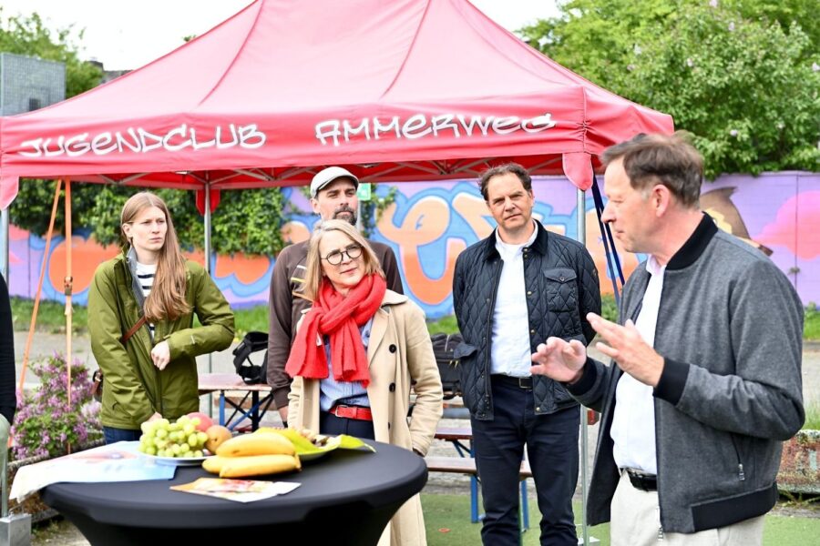 Achim Radau-Krüger, Stadtdirektor Burkhard Hintzsche und Oliver Boedrig warben auch um Unterstützer*innen bei den Düsselferien