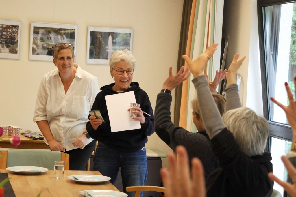 Änne Türke und Katrin Meyer freuten sich über den erfolgreichen Abschluss des Kurses. Katrin Meyer betonte: „Wir bedanken uns herzlich bei allen Ehrenamtlichen für ihre Bereitschaft, sich mit so viel Zeit, Verantwortung und Herz einzubringen. Wir wünschen den neu ausgebildeten Mensch-Hund-Teams viel Freude und viele bereichernde Begegnungen bei ihren Einsätzen.“ Nun können alle in den Besuchsdienst vermittelt werden. Die Besuche erfolgen als individuelle 1:1-Betreuung bei Menschen mit Demenz in Privathaushalten und in Pflegeeinrichtungen. Zuerst gibt es ein Kennenlernen, denn nur wenn die Chemie stimmt, gibt es regelmäßige Treffen. Wenn es nicht passt, wird nach anderen Ehrenamtler*innen geschaut. Wichtig ist, dass immer dasselbe Mensch-Hund-Team die Begleitung übernimmt, die häufig über eine lange Zeit andauert. Der Kontakt zu den Hunden bringt Abwechslung und soziale Nähe in den Alltag der Betroffenen, kann die Stimmung deutlich aufhellen, Einsamkeit reduzieren und wirkt zugleich entlastend für Angehörige.