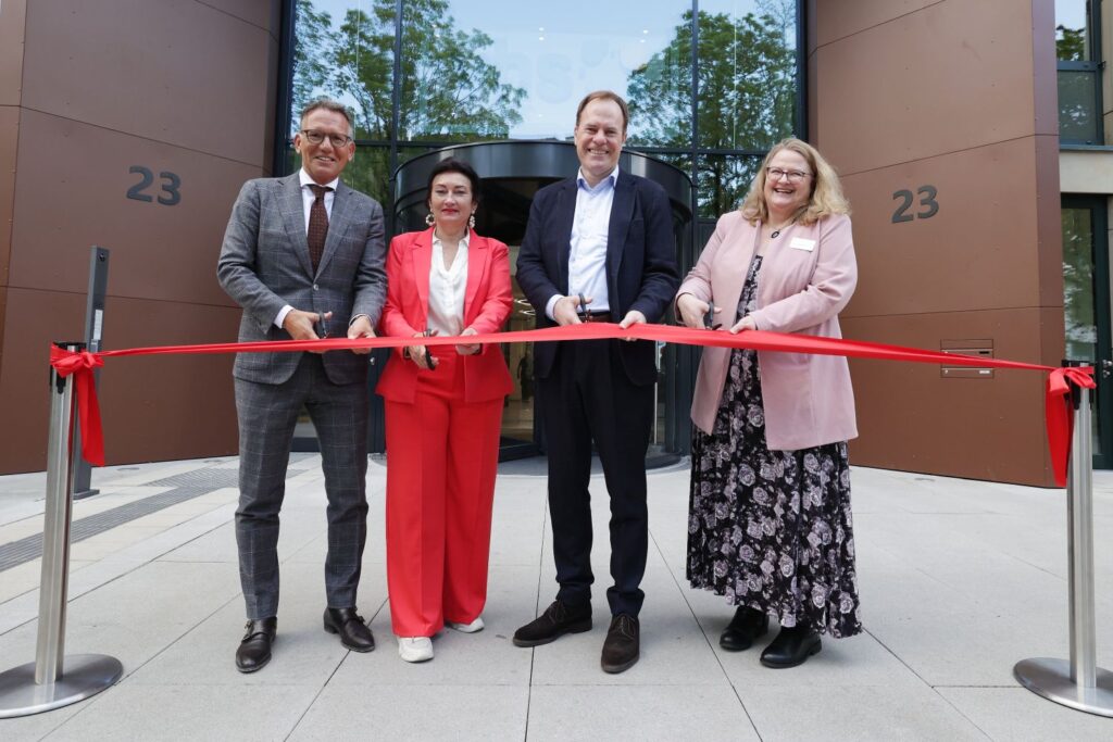 (v.l.) Ulrich Höller (Geschäftsführung ABG Real Estate Group), Miriam Koch, Oberbürgermeister Dr. Stephan Keller und die Leiterin der VHS Simone Bruns, eröffneten zusammen das “Yorcks”, Foto: Stadt Düsseldorf, David Young