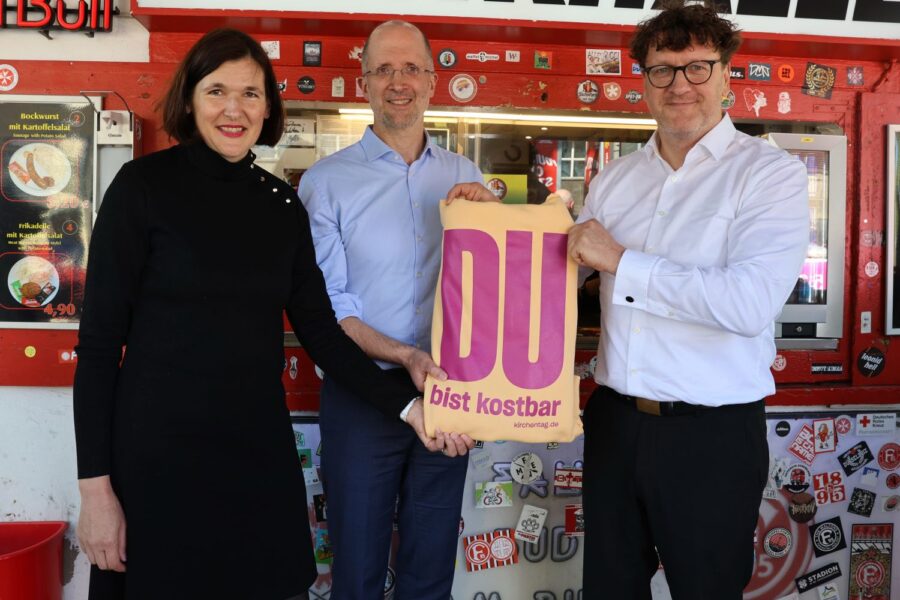 Gemeinsam präsentierten Stadt, Landeskirche und Kirchentag das Konzept des Kirchentags mit der Losung „Du bist kostbar“ (Jes 43,4), die ab sofort in Düsseldorf, online und an vielen weiteren Orten sichtbar sein wird. Sie soll dazu einladen den Kirchentag als Ort der Begegnung, des Dialogs und der Gemeinschaft zu erleben.