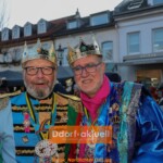 Traditionell zogen die Karnevalisten in einem kleinen Zug, begleitet vom Tambourcorps Barbarossa, zur kleinen Bühne, die auf dem Klemensplatz aufgebaut war. Dort wurden sie bereits von zahlreichen Gästen befreundeten Karnevalsvereine erwartet.