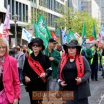 In Düsseldorf sind die Gewerkschaften Frauensache. Ob IG Metall, IG BCE – Bergbau, Chemie, Energie, die Dienstleistungsgewerkschaft ver.di oder der DGB-Ortsverband Düsseldorf Bergisch-Land: Das große, straßenbreite Transparent mit dem diesjährigen 1. Mai-Motto „Ungebrochen solidarisch“ wird von Kämpferinnen durch die Stadt getragen. Gut 1000 Menschen haben sich am Montag (1.5.) bei der Mai-Demo auf den Weg gemacht, um eines ganz laut kund zu tun: Ohne Arbeitnehmer*Innen geht gar nichts.
