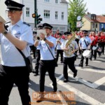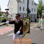 Am Denkmal waren am Sonntag solche Herausforderungen vergessen. Zur Parade waren alle gut gelaunt: Fahnenschwenker, Blumenhornträger und Schützen – und mehrere hundert Schaulustige sowieso. Die Moderation bei der Parade übernahm erneut Angela Helmdach. Sie erklärte sehr kundig, was die Zuschauer zu sehen bekamen. Anschließend zogen die Schützen in Düsseldorf Hassels zum Festzelt.