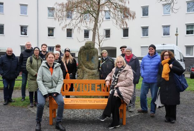 Am Hexengedenkstein in Gerresheim stellten die Vertreter*innen des DGB am Dienstag (25.11.) ihre orange Bank der Kampagne ,,No Violence – keine Gewalt an Frauen und Mädchen!“ ... -