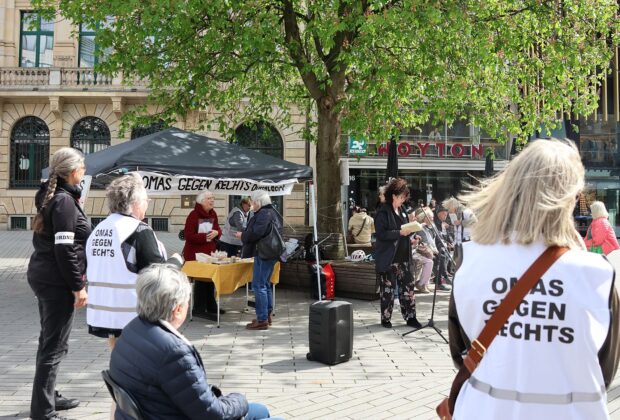 Düsseldorf: Omas gegen Rechts erinnerten an die Bücherverbrennung am 11. April 1933