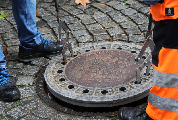 Ein besonderer Gullideckel ist dem Düsseldorfer Karneval gewidmet