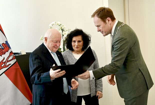 Eheleute Ruth und Herbert Rubinstein mit Verdienstplakette der Stadt Düsseldorf ausgezeichnet
