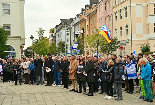 Rund 150 Menschen kamen am Montagabend (6.10.) auf den Vorplatz der Synagoge in Düsseldorf. Sie hatten Kerzen in den Händen, manche trugen Israels Flaggen. Gemeinsam gedachten ... -
