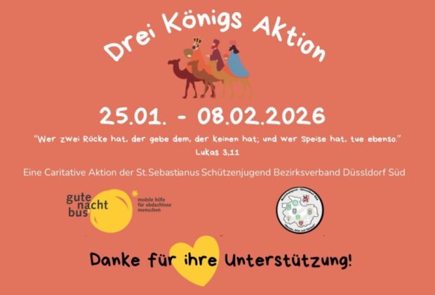 Die St. Sebastianus Schützenjugend des Bezirksverband Düsseldorf Süd hat eine Sammelaktion für den gutenachtbus von vision:teilen gestartet. Nach einem ersten Termin in Unterbach sind alle Düsseldorfer*innen ...