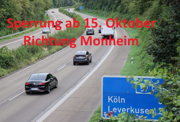 Ab 15. Oktober Sperrung der A59 ab Dreieck Düsseldorf Süd Richtung Monheim